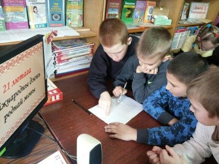 Мова – душа народа, векавая праца многіх пакаленняў, люстэрка духоўнага жыцця і творчасці грамадства, наш галоўны і неацэнны скарб. І сення гонар і абавязак усіх нас –шанаваць родную мову, садзейнічаць яе развіццю. У шосты школьны дзень, вучні 3-4 класаў прымалі ўдзел у гутарцы «Любі, шануй, ведай роднае слова», прысвечанай дню роднай мовы, які адзначаюць штогод - 21 лютага. Дзеці даведаліся пра гісторыю святкавання дня роднай мовы, паказалі свае веды, разгадалі крыжаванку, чыталі вершы, а потым пазнаеміліся з выставай “Для тых, хто любіць літаратуру і любіць яе па-беларуску”. Загадчык бібліятэкі Т.М. Скрылькова