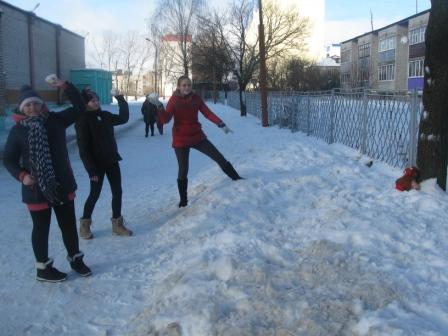 18 февраля 2017 года учащиеся 8-х классов под руководством классного руководителя 8 «В» класса провели игровую минутку «Зимние забавы»: отгадывали загадки про зимние виды спорта, играли в игру «Мишень». Ученики с пользой для здоровья провели время на свежем воздухе. |