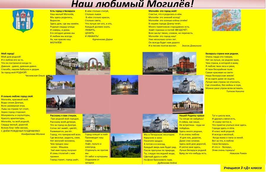 28.03.2017 Учащиеся 8 «В» класса совместно с классным руководителем составили коллаж любимых мест родного города Могилева. Ребята с интересом подбирали фото. Было принято решение продолжить эту интересную работу.
