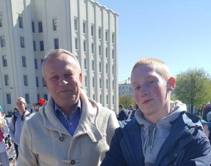 В 6-й школьный день 13 мая дети школы были задействованы так же во внешкольных мероприятиях. Одним из самых интересных праздников стало участие в городском спортивно-массовом мероприятии «Велооткрытие-2017» на площади Ленина. Каждый, кто приехал на велосипеде, мог поучаствовать в конкурсе маскарадных костюмов. Самым ярким событием для детей стало появление на площади мэра города Могилева Владимир Михайлович Цумарева, который с удовольствием пообщался и сфотографировался с желающими. |