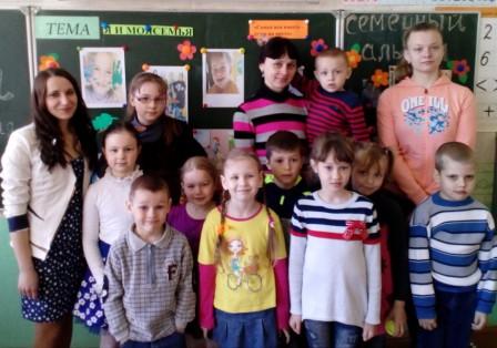 В рамках шестого школьного дня в субботу 13 мая учитель начальных классов Новикова Е. В. провела мероприятие «Я и моя семья». На мероприятии родители и дети рассказывали о своих семьях, о совместно проведенных праздниках. Ребята с интересом разгадывали ребусы, пели песни, составляли пословицы о семье. Мероприятие окончилось веселым танцем. |