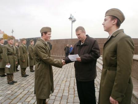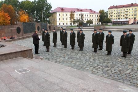 С 11 по 13 октября на Советской площади в Могилеве Почетный караул школы нес Вахту памяти. Торжественное открытие Вахты памяти состоялось 11 октября. Цветы и венки к Вечному огню возложили члены ПО ОО «БРСМ» и ПО ОО «БРПО». Уже 29 лет подростки с гордостью заступают на Почетный Пост Памяти павших за Отечество, произнеся перед этим слова торжественной клятвы. Заступая на пост, ребята отдают дань уважения воинам, которые, защищая Родину, навсегда остались на полях сражений. Несение Вахты памяти у Вечного огня на Советской площади – свидетельство глубокого уважения и признательности истории родного города и своего народа. Состав Почетного караула: Начальник караула - Ореховский Денис Дежурный по караулу – Букетов Дмитрий Помощник дежурного по караулу – Крупельницкий Иван