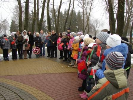 21 февраля 2014 г. прошел митинг, посвященный Дню защитника Отечества. Это дань нашего уважения всем поколениям воинов, от древних времен до сегодняшнего дня, мужественно защищавших родную землю от врагов. Учащиеся школы, представители трудовых коллективов возложили цветы и венки к памятнику погибшим землякам в микрорайоне Казимировка. Перед собравшимися выступил ветеран Вооруженных сил Докторов Анатолий Кузьмич, который поздравил всех присутствующих с наступающим Днем защитника Отечества и Вооруженных сил Республики Беларусь. |