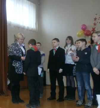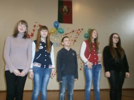 22 февраля в школе прошел фестиваль патриотической песни, посвященный Дню защитника Отечества и 70-летию освобождения Беларуси от немецко-фашистских захватчиков. Всем запомнилась песня «Катюша» в исполнении учащихся 7в класса, песня «Орлята учатся летать» учащихся 5а класса, «День Победы» в исполнении учащихся 6б класса и учащейся 9б класса Макаренко Елизаветы, песня «Орленок» учащейся 5б класса Кундиковой Екатерины. Победителями фестиваля стали: 1 место – 5А 5Б 9Б классы 2 место – 7В 6Б классы 3 место – 6А классы