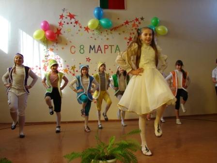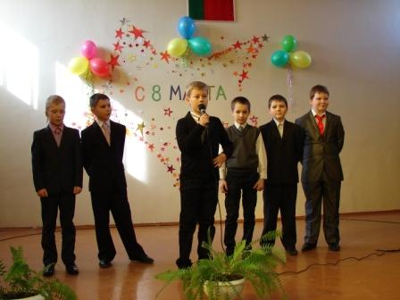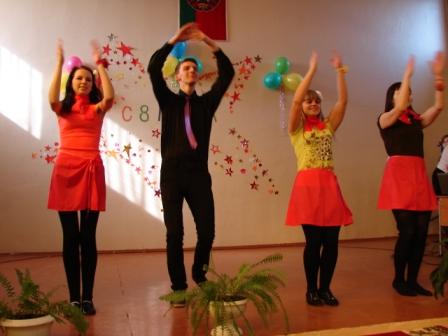 В преддверии 8 марта учащиеся школы преподнесли педагогам праздничный концерт. Всем запомнилось выступление учащихся 1 и 4 классов, музыкальное поздравление Кундиковой Екатерины (5б), Макаренко Елизаветы (9б), Винниковой Дарьи (2в). Весело и задорно выступили учащиеся 11б кл., которые подарили танцевальный номер.