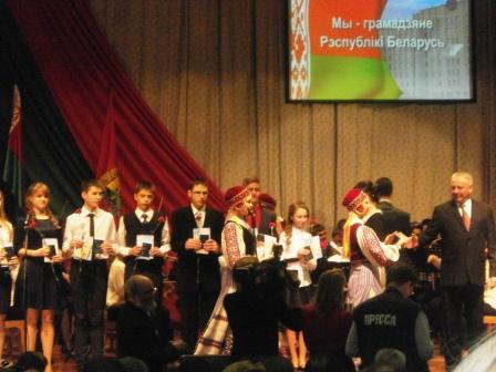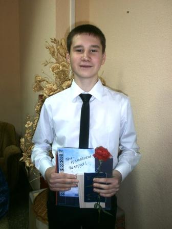 Торжественное вручение паспортов прошло в Могилеве в рамках всебелорусской акции "Мы - граждане Беларуси!". Главный в жизни документ получили 20 юношей и девушек - представителей талантливой молодежи региона. В церемонии приняли участие председатель Могилевского облисполкома Петр Рудник, помощник Президента Беларуси по Могилевской области Геннадий Лавренков, представители органов местной власти, ветеранских организаций, Белорусского республиканского союза молодежи. "20 лет назад в Беларуси произошло важное историческое событие: был принят Основной Закон, признанный одним из самых прогрессивных в мире, - отметил Петр Рудник. - Человек, его права и свободы были провозглашены высшей ценностью государства, главной целью его развития. С этого дня Беларусь получила надежный правовой фундамент, незыблемый каркас гражданского мира, согласия и единства. В стране начало формироваться новое гражданское общество, которое взяло на себя ответственность за будущее нашей Родины. Сегодня мы имеем право с гордостью утверждать: современное белорусское общество стало единой могучей силой, сплотившей людей разных национальностей и религий". Отличники учебы, победители различных олимпиад, конкурсов и соревнований получили из рук губернатора не только паспорт, но и красочные иллюстрированные издания "Я - гражданин Республики Беларусь", карманные конституции, напутствия председателя Могилевского облисполкома и специальные вкладыши в паспорта с текстом гимна и государственной символикой. Такого права был удостоен учащийся 9а класса ГУО «Средняя школа № 19 г.Могилева» Сидорович Максим. Член ПО ОО «БРПО», ПО ОО БМООСП. Член отряда милосердия и отряда волонтеров. 2011/2012 учебный год - победитель районной олимпиады по географии (диплом 2 степени), (поощрительный диплом) по биологии 2012/2013 учебный год - победитель районной олимпиады по биологии (диплом 3 степени), победитель районной олимпиады по географии (диплом 2 степени). Победитель конкурса «Зубренок-2012», «Журавлик- 2011». Победитель городского конкурса инновационных проектов “Город здоровья” 2013 г. (диплом 2 степени). В свободное время посещает секцию баскетбола и волейбола. Член сборной команды школы по волейболу, баскетболу. Участник городской олимпиады по ЗОЖ и ОБЖ. Коллекционирует старинные монеты. Средний балл 8,9 балла.