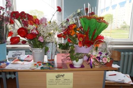 В рамках общегородской акции «Цветы для героев Победы», посвященной 70-летию освобождения Республики Беларусь от немецко-фашистских захватчиков, учащиеся школы организовали сбор цветов, изготовили праздничные открытки, сами вырастили комнатные цветы и все подарили ветеранам Великой Отечественной войны, жителям микрорайона Казимировка и ветеранам войны, проживающим в Доме ветеранов. |