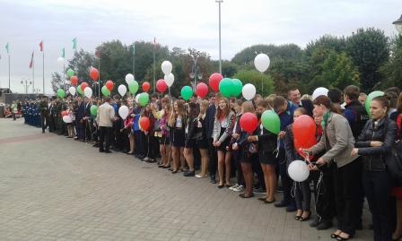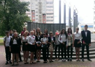в 8В классе прошёл первый урок «Нам мир завещано беречь!» Учащиеся вместе с классным руководителем возложили цветы к памятнику погибшим землякам в микрорайоне Казимировка.