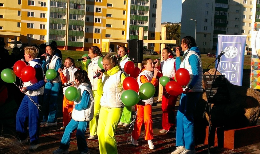 Поезд «Экспресс ООН – 70: на пути к партнерству для развития» прибыл 28 октября на могилевский железнодорожный вокзал. В качестве пассажиров он привез в областной центр сотрудников ООН, представителей правительства, общественных организаций, партнеров от частного сектора, молодежь, художников, представителей уязвимых групп населения. В рамках празднования 70-летия ООН в микрорайоне «Спутник» г. Могилева состоялась торжественная церемония закладки первого камня в основание энергоэффективного многоквартирного жилого дома, оборудование для которого приобретает международная организация. Педагог – организатор Башкеева С.В.