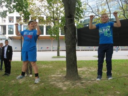 Учащиеся 5 "В" класса посетили городской праздник «Твори, выдумывай, пробуй!», посвященный Дню знаний. Здесь ребята смогли принять участие в культурно-развлекательной и спортивной программе. Во время праздника организаторы пополнили их «багаж» знаний о безопасном поведении. Дети примеряли боевой костюм спасателей, пробирались по задымленному помещению, искали «пострадавших» с завязанными глазами, повторяли правила перехода дороги и сигналы светофора, ходили по канату и звонили в службу экстренной помощи. Кроме того, на празднике наносили аквагрим, рисовали песком, работали площадки городских библиотек, центров творчества детей и молодежи.