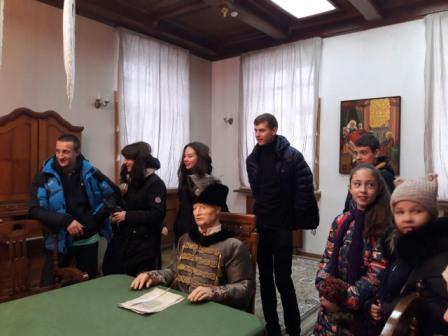 На осенних каникулах учащиеся 5 "Б" (кл.рук. Макарова А.Н.), 5 "В" (кл.рук. Куртасова Н.Ю.) и 11 "А" (кл.рук. Тычко И.А.) классов посетили одну из самых интересных достопримечательностей города, Ратушу - музей истории Могилёва. Познавательная экскурсия в залах музея расширила представления школьников об истории родного города. Средневековые персонажи в исторических костюмах оживили атмосферу, а уникальные экспонаты вызвали неподдельный интерес детей к жизни наших предков. Особенно приятно было лицезреть такие артефакты, как Икона Троицы, Статут Великого Княжества Литовского 1588г., немецкое издание Казимира Семеновича «Великое искусство артиллерии», доспехи и вооружение той эпохи. Спасибо работникам музея за интересный рассказ.