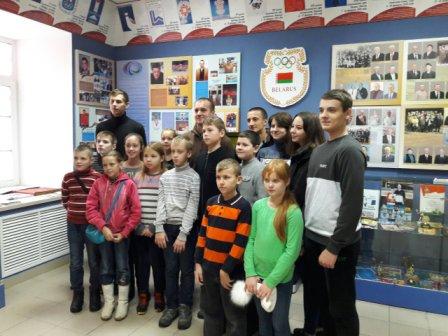 2 ноября 2016г. Олимпийский комитет Могилёвской области, во главе с его руководителем Панченко Вадимом Фёдоровичем, в стенах Зала спортивной славы Могилёвщины, провёл встречу с учащимися 5 «Б», 5 «В» и 11 «А» классов СШ №19 с целью пропаганды и популяризации спорта среди молодёжи. Дети познакомились с историей Олимпийского движения, условиями тренировок и достижениями первых спортсменов города и области, Олимпийскими чемпионами, уроженцами Могилёвщины. Кульминацией встречи явилось «живое» общение с нашим земляком, Олимпийским чемпионом по биатлону Сергеем Новиковым. Он рассказал о становлении своей спортивной жизни, успехах и достижениях. Учащиеся смогли задать интересующие их вопросы и подержать в руках экспонаты музея, ранее принадлежавшие Великим Чемпионам. А.Н.Макарова, Н.Ю.Куртасова, И.А.Тычко |