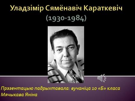 Адбылося незвычайнае мерапрыемства – конкурс прэзентацый “Пісьменнікі Беларусі”. Вучні 10-ых класаў праявілі сябе творча ў дэманстрацыі прэзентацый. Настаўнікам і вучням спадабаліся прэзентацыі ўсіх удзельнікаў, але самае прыемнае ўражанне засталося ад прэзентацый наступных вучняў: Грыгор’евай Н., Нікіцінай В., Алейнікава М., Томашава Р. У ходзе падрыхтоўкі да конкурса вучні пашырылі свае веды пра беларускіх пісьменнікаў, расказалі і паказалі невядомыя факты з іх жыцця і творчасці. Гэтае заданне выклікала ў навучэнцаў жаданне прадоўжыць гэтую цікавую працу і падрыхтаваць буктрэйлеры па творчасці пісьменнікаў Беларусі. Бясцэнная А. Ф. |