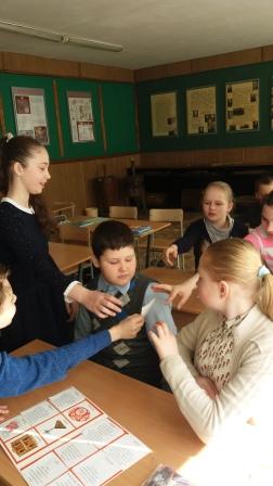 У суботу 15 красавіка напярэдадні вялікага свята вучні 7-х класаў прынялі ўдзел у інтэрактыўнай віктарыне “Гісторыя свята Вялікдзень”. Хлопцы і дзяўчаты спачатку гукалі вясну, потым даведаліся пра гісторыю свята Вялікдзень, пра традыцыі і абрады беларусаў, звязаныя з гэтым днём, таксама выконвалі творчыя заданні. Дзяўчаты дзяліліся рэцэптамі прыгатавання велікодных страў, хлопцы расказвалі пра традыцыйныя велікодныя гульні. У завяршэнні мерапрыемства дзеці прынялі ўдзел у гульнях “Арэлі” і “Ручаёк”.Зяткіна Н. М., настаўнік беларускай мовы і літаратуры |